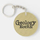 "Geology Rocks!" The ubiquitous geology saying, on a keychain with a brown rock hammer themed backdrop. Show off your love for geology!