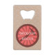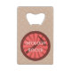 The badge-style geology logo on this bottle opener includes a rock hammer in dark red in front of a reddish sunburst design. Overlying that is the customisable phrase "Geology Rocks!" in an light pink, art deco, industrial-style typeface. The brown background consists of a bunch of tiny geology rock hammers!