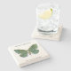 The coasters are gorgeous, a quality feel and heavy weight. They look like a precious archeological find. A rustic stone juxtaposed with a modern floral black and white print. I like the way the print goes slightly imperfect on the cut stone edges giving them a kind-of natural beauty.