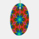 An attractive geometric pattern/design in shades of red, blue, green, yellow and purple with a kind of flower like motif.