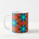 An attractive geometric pattern/design in shades of red, blue, green, yellow and purple with a kind of flower like motif.