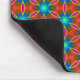 An attractive geometric pattern/design in shades of red, blue, green, yellow and purple with a kind of flower like motif.