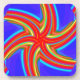 An attractive geometric pattern or design predominately in shades of red and blue, but also with yellow, cyan, purple and green.