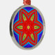 An attractive geometric pattern predominately in shades of red and blue, but also with yellow, cyan, purple and green.