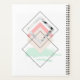 This design features a pink and mint green design outlined in black geometric shapes.