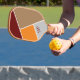 Introducing a paddle that blends modern aesthetics with vintage vibes. The geometric, abstract design showcases squares in diverse sizes and retro hues, creating a visually stunning composition. Imprint your personal touch on the paddle with monogram initials elegantly placed in one of the squares, making it a stylish extension of your game.