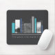 Stylish mousepad for someone in the architecture business with geometric shapes filled with textures and colours in grey, blue, white, and turquoise.