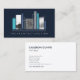 Stylish business card for an architect, in grey, blue, and turquoise with geometric shapes filled with photos, colours, and patterns.