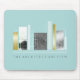 Stylish mousepad for someone in the architecture business with geometric shapes filled with textures and colours in teal, white, and gold.
