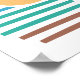 Sunset on the beach represented with geometric lines and circle in sort of a pop art or modern art style with tropical colours. ©Visuaria Publishing.