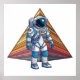 Dive into the cosmos with this vibrant poster featuring a stylised astronaut set against a geometric, prism-like background. This artwork blends the wonders of space exploration with the modern appeal of geometric patterns, making it perfect for space enthusiasts and lovers of contemporary art.