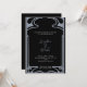 This invitation is crafted with high-quality materials and meticulous attention to detail, featuring a dramatic black background adorned with intricate silver and black geometric lines and shapes. The striking contrast between the silver and black elements creates a visually captivating design that will leave a lasting impression on your guests.