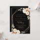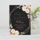 This geometric black formal royal floral wedding invitation is perfect for a rustic wedding. The design features watercolor pink, blush, and white elegant flowers with emerald green leaves.