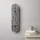 A skateboard with an abstract geometric vector design made up of lines and polygon shapes.