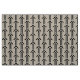 Stylish geometric fabric features three alternating black and transparent chevrons pointing up and ending at a diamond. Three black stripes extend from the top of the diamond to the base of the repeated design. The half drop design gives a feeling of arrows pointing upwards.