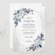 Embrace timeless elegance with our Geometric Blue Floral Wedding Invitation, a beautiful choice for couples seeking a sophisticated blue or navy-themed celebration. Perfectly suited for a winter wedding or any season with a touch of elegance, this invitation combines intricate floral patterns with modern geometric accents, creating a unique balance of classic and contemporary style. The deep blues and navy tones blend seamlessly, adding a sense of refinement and grace that speaks to both tradition and modernity.