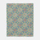 Geometric Boho fleece blanket, The colours are green, blue and tan. Curl up on the couch with a book and this pretty blanket.