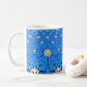geometric blue grid coffee mug