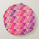 Round pillow with pink, purple, orange triangles pattern.