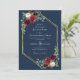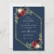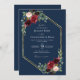 burgundy navy blue wedding colour theme with geometric frame and burgundy, navy blue flowers. The text and colours can be edited.