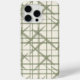 This phone case features a stylish, geometric design with intersecting green lines forming a grid-like pattern on a light beige or off-white background. The lines vary in thickness, creating a modern, abstract effect. It's designed for a smartphone with three camera lenses and a flash, indicating compatibility with a newer phone model. The overall look is minimalist yet eye-catching—great for someone who appreciates a sleek, artistic aesthetic!