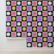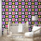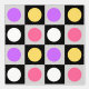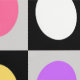 Chequered Geometric circle Dots Purple pink, yellow and white Black and White on grey and black squares Pattern Design Wallpaper