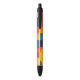 Brightly coloured circles and rectangles in blue, yellow, orange and more form a lovely abstract design on this pen. Perfect for home, office, or school.