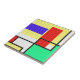 A geometric pixel pattern of shapes and lines in red, green, blue, yellow, black and white.