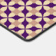 Geometric cross pattern in mute colours; purple, tan and pale yellow. Elegant timeless design with mediaeval vibes.