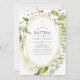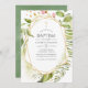 Trendy baptism invite with gold geometric frame and sage green watercolor wash reverse designed to be quickly and easily customised to your event specifics.