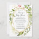 Trendy drive through bridal or baby shower invitation with gold geometric frame and sage green watercolor wash reverse.