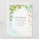 Trendy greenery garden wedding invitation with gold geometric frame and sage green watercolor wash reverse designed to be quickly and easily customised to your event specifics.
