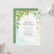 Trendy greenery first holy communion invite with gold geometric frame and sage green watercolor wash reverse designed to be quickly and easily customised to your event specifics.