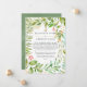 Dazzling crystal greenery with gold geometric frame reduced guest list announcement card. In these uncertain times, it can happen that you may have to hold a smaller wedding than originally planned. This announcement card will take away the awkwardness and take a load off your mind! You can furthermore provide an option to join you for a virtual ceremony.