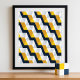 A bold and modern geometric pattern featuring a series of repeating cubes in yellow, white, and navy blue background. The design creates an optical illusion of depth and 3D shapes, perfect for adding a contemporary touch to any space or product. This abstract pattern is ideal for wallpapers, textiles, and digital prints, offering a dynamic and vibrant aesthetic.