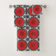 Geometric Daisy Pattern in Red Black & White Bath Towel Set
