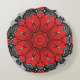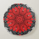 Geometric Daisy Pattern in Red Black & White Round Cushion