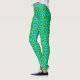Leggings in a geometric daisy pattern in turquoise and dark and light emerald green