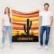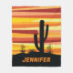 Abstract geometric desert sunset illustration with yellow, orange and red diagonal stripes and cactus decoration. Add your name/monogram or delete the text.