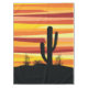 Abstract geometric desert sunset illustration with yellow, orange and red diagonal stripes and cactus decoration. Add your name/monogram or delete the text.