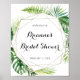 This geometric destination bridal shower welcome poster is perfect for a tropical wedding shower. The design features hand-painted watercolor green palm and banana leaves neatly arranged into beautiful bouquets, adorning a gold geometric frame.