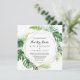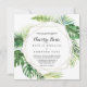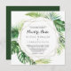 This geometric destination nuestra boda wedding invitation is perfect for a tropical wedding. The design features hand-painted watercolor green palm and banana leaves neatly arranged into beautiful bouquets, adorning a gold geometric frame.