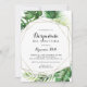 This geometric destination Spanish bridal shower invitation is perfect for a tropical wedding shower. The design features hand-painted watercolor green palm and banana leaves neatly arranged into beautiful bouquets, adorning a gold geometric frame.