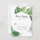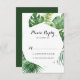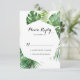 These geometric destination tropical greenery RSVP cards are perfect for a modern wedding. The design features hand-painted watercolor green palm and banana leaves neatly arranged into beautiful bouquets, adorning a geometric frame.