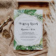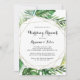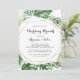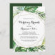 This geometric destination tropical wedding brunch invitation is perfect for a family and friends day after the wedding get together brunch. The design features hand-painted watercolor green palm and banana leaves neatly arranged into beautiful bouquets, adorning a gold geometric frame.