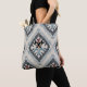 Elevate your style with this tote bag featuring a geometric diamond pattern design in shades of black, white, blue, and red. The intricate and symmetrical motifs inside each diamond create a visually appealing and unique accessory. Crafted from high-quality fabric with durable black handles, this tote is perfect for daily use, beach trips, or as a thoughtful gift for someone special. The light-coloured background contrasts beautifully with the darker motifs, making this bag a standout piece.