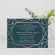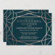 A modern and contemporary winter rehearsal dinner invitation, features a "faux foil" gold rose geometric pattern over a dark turquoise background. All your details are spelled in a beautiful modern typo.