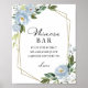 Geometric Dusty Blue Floral Mimosa Bar Sign