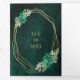Geometric Emerald Green Floral QR Code Wedding Tri-Fold Invitation