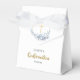 Simplistic blue eucalyptus leaves in a gold geometric frame Baptism or Confirmation favour box customisable to your event specifics.